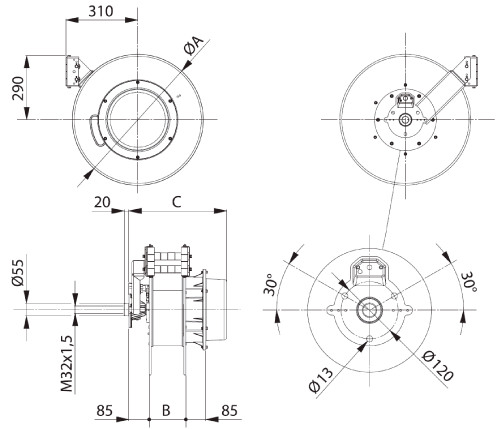 Kollektorström 32, 60 och 100 A. Levereras utan kabel eller med H05VV-F